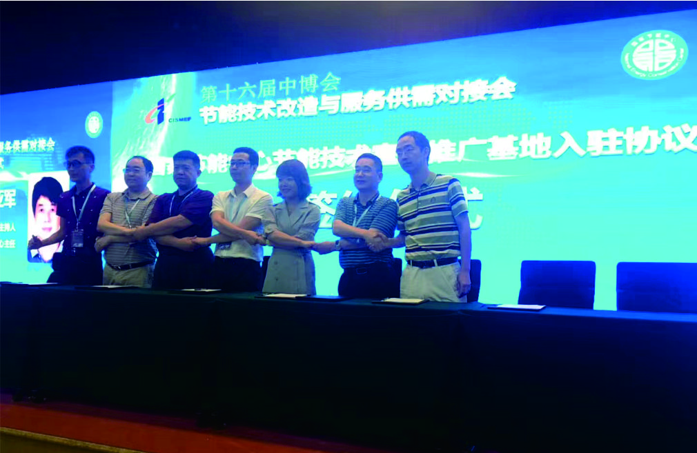 公司董事長陳程(左二)在第十六屆中博會(huì)節(jié)能技術(shù)改造與服務(wù)供需對(duì)接會(huì)上簽約留影